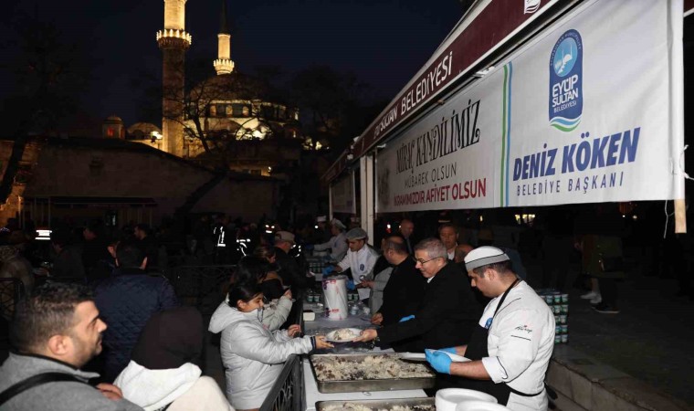 Miraç Kandili’ni Eyüpsultan’ın manevi atmosferinde idrak etmek isteyen Müslümanlar, Eyüp Sultan Camii’nde namazlarını kıldıktan sonra Eyüp Sultan Hazretleri’nin türbesini ziyaret etti. Akşam namazı sonrası Eyüp Sultan Camii’nde hem Miraç Kandili hem de geçtiğimiz yıl meydana gelen Kahramanmaraş merkezli depremde hayatını kaybedenler için Mevlid okundu, dualar edildi. Mevlid sonrası Eyüpsultan Belediye Başkanı Deniz Köken, Eyüp Sultan Meydanı’nda vatandaşlara pilav ve ayran ikram etti.