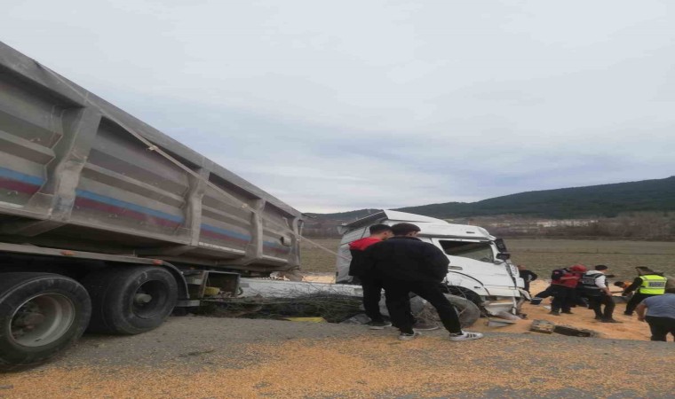 Sakarya’nın Taraklı ilçesinde sürücüsünün kontrolünden çıkan mısır yüklü tır devrildi. Sürücünün yaralandığı kazada, dorsedeki mısırlar çevreye savruldu.