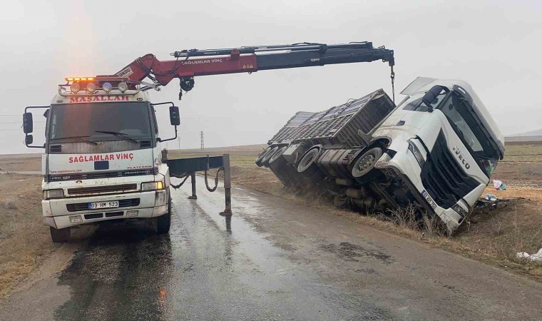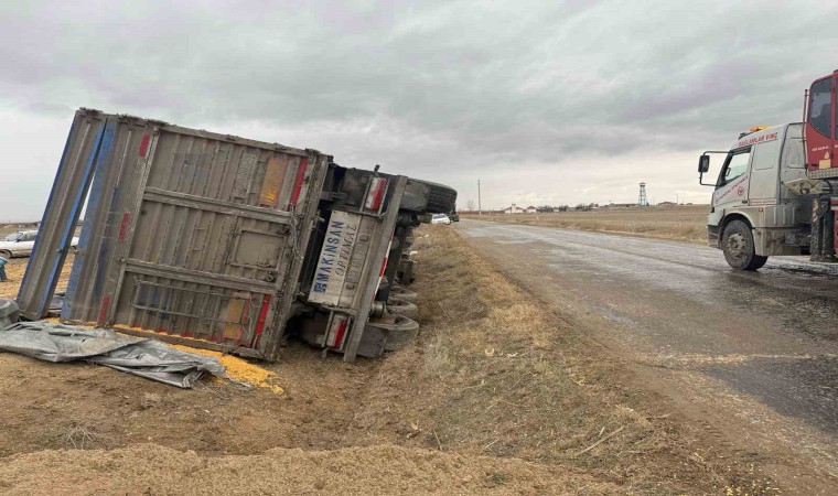 Afyonkarahisar’da kontrolden çıkan mısır yüklü tırın devrilmesi sonucu yaşanan kazada tonlarca mısır araziye saçılarak ziyan olurken, olayda büyük çapta maddi hasar meydana geldi.