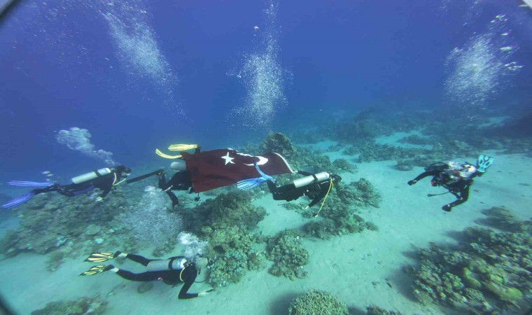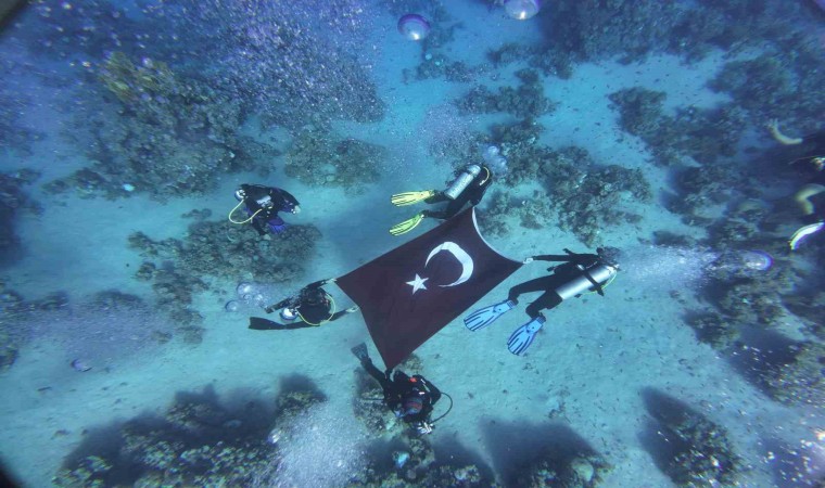Eskişehir’den Mısır’a ve İzmir’e giden dalgıçlar, saat 09.05’te su altında ve üstünde açtıkları Türk bayrağı ile Atatürk’ü vefatının 86’ncı yılında andılar.