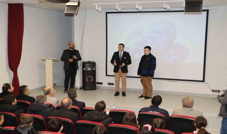 Kısa film gösterimi ile devam eden programın ardından Kaymakam Bilici tarafından iş insanı Cemil Çıldır’a teşekkür plaketi takdim edildi.