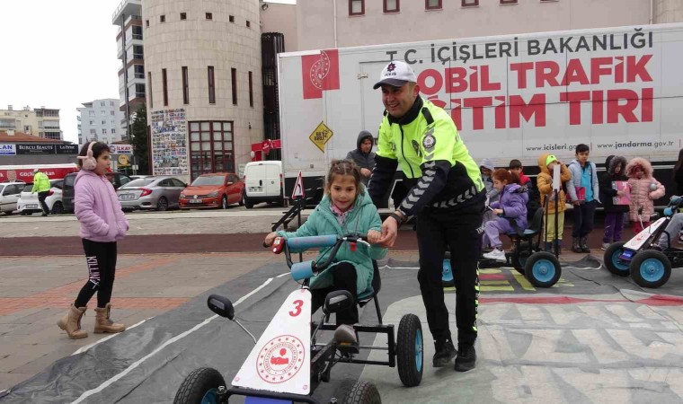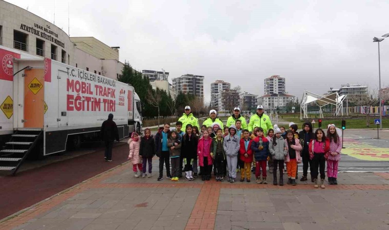 Türkiye genelinde ilkokul öğrencilerinin trafik konusundaki farkındalığının geliştirilmesi amacıyla başlatılan proje kapsamında hazırlanan Mobil Trafik Eğitim Tırının son durağı Uşak oldu.