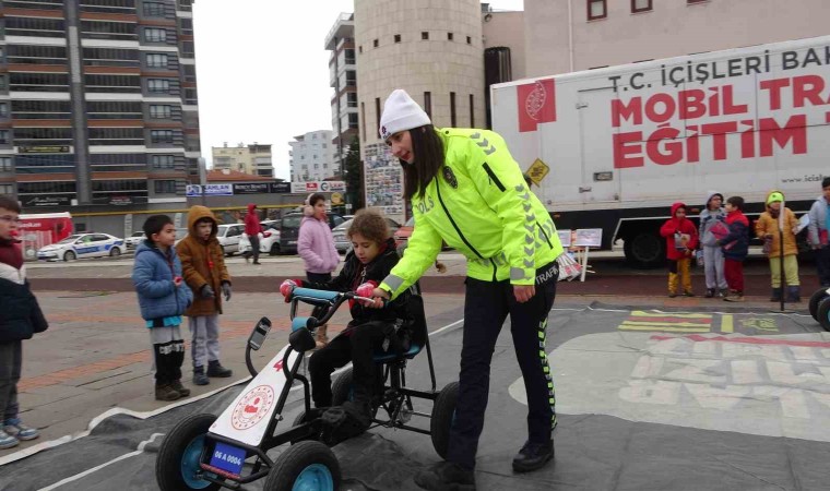 İçişleri Bakanlığı ve Milli Eğitim Bakanlığı arasında imzalanan iş birliği protokolü çerçevesinde Türkiye’nin 4 bir yanında çocuklarla buluşan Mobil Trafik Eğitim Tıruının faaliyetleri kapsamındaki son durağı Uşak oldu. Uşak Atapark Meydanı’na konuşlandırılan eğitim tırı, trafikte dikkat etmesi gerektiği noktaları anlatmak ve onları trafik konusunda bilinçlendirmek amacıyla öğrencilerle buluştu. Öğrenciler Uşak İl Emniyet Müdürlüğü’ne bağlı trafik ekipleri eşliğinde önce teorik, sonrasında kurulan eğitim parkurunda uygulamalı trafik eğitimi aldı.