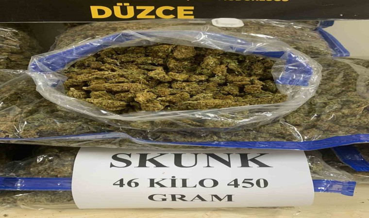 TEM Otoyolu Düzce geçişinde durdurulan kamyonette polis ekipleri tarafından yapılan aramada mobilyalar içine zulalanmış 46 kilo 450 gram skunk ele geçirildi. Olaya ilişkin 3 şüpheli gözaltına alındı.