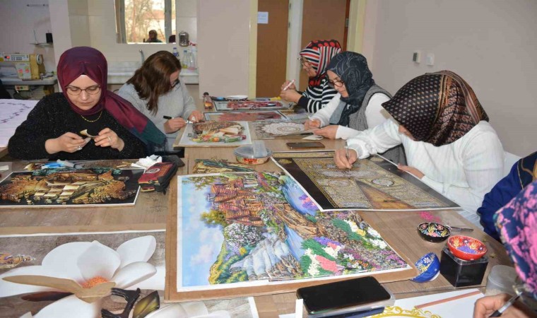 Sorgun Halk Eğitim Merkezinde kadınlar ayrıca rölyef kursuna da katılarak ürettikleri ürünleri satarak aile bütçelerine de katkı sunuyorlar.