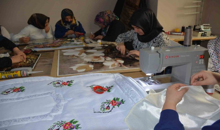 Yozgat’ın Sorgun ilçesinde birçok evde yıllarca sandık ve hurçlarda saklanan çeyizler, dikiş nakış kursunda modernize edilerek gelinlik kızların hayallerini süslüyor.