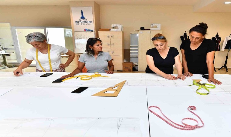 İzmir Büyükşehir Belediyesi Kadın Çalışmaları Şube Müdürlüğü’nün Meslek Fabrikası iş birliği ile hayata geçirdiği Mor Makas Dikiş Kursu başladı. Makas ve mezuraları eline alan kadınlar, kalıp çıkarmayı öğrenip dikiş makinesinin başına geçmeye hazırlanıyor.
