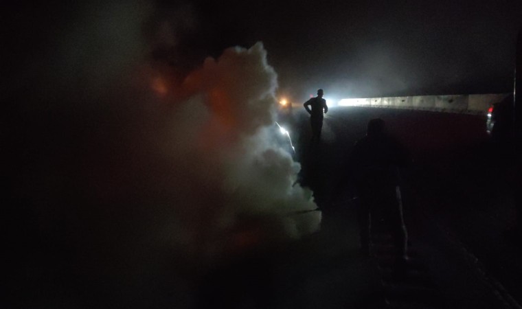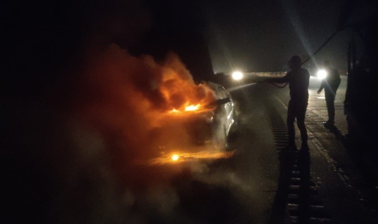 Hatay’ın Belen ilçesinde seyir halindeyken motor kısmı yanmaya başlayan araç alev topuna döndü.