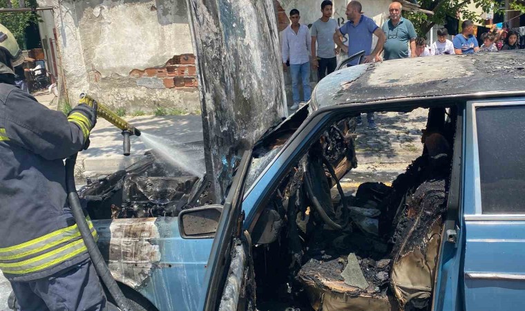 Yangın sebebiyle otomobil kullanılamaz hale geldi.