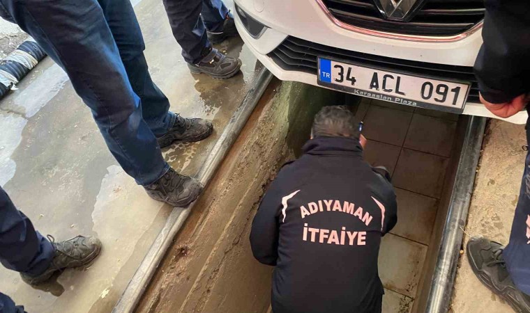 Adıyaman’da bir otomobilin motor kısmına sıkışan kedi, itfaiye ekiplerince çıkarıldı.