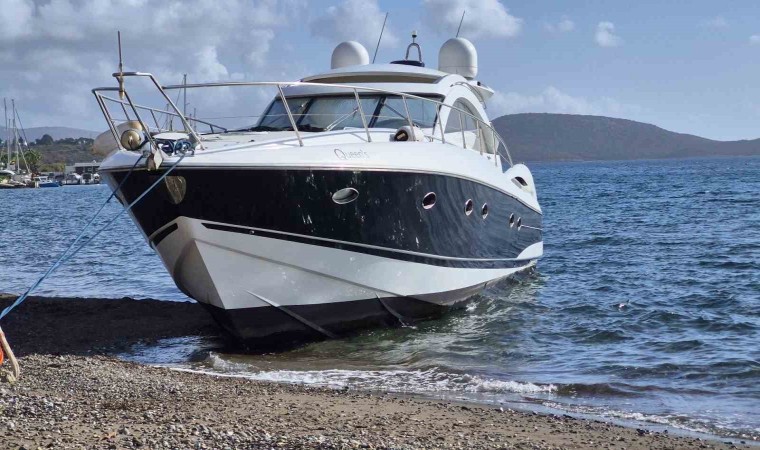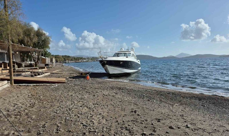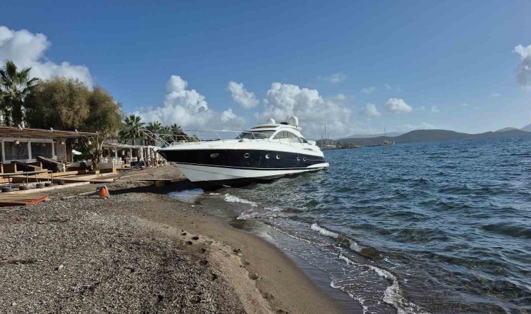 Muğla’nın Bodrum ilçesinde bağlı olduğu halatı kopan motoryat, karaya vurdu.