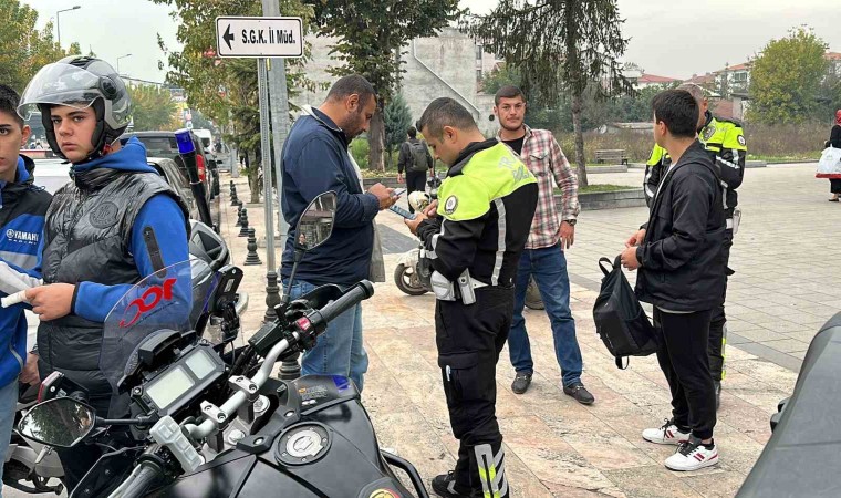Düzce İl Emniyet Müdürlüğüne bağlı ekipler, şehir merkezinde motosikletli sürücülere yönelik denetim yaptı. Bolu Caddesi üzerinde okul çıkış saatlerinde motosikletli sürücülere denetim yapıldı. Denetimde kask takmayan, ters şeritte ilerleyen, yaya alanlarını kullanan ve yayalara yol vermeyen motosiklet sürücüleri kontrol edildi.