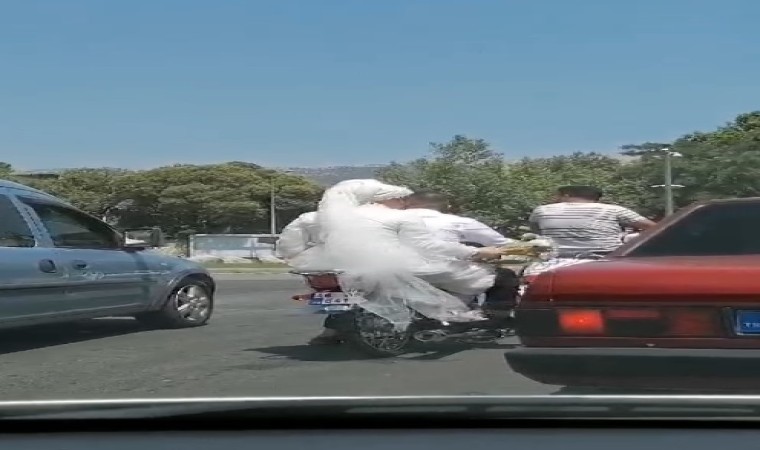 Kahramanmaraş’ta evlenen bir çiftin, gelin arabası yerine motosikleti tercih etmesi dikkat çekti. Çiftin yolculuğu vatandaş kamerasına yansıdı.