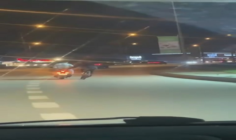 Olay, Sanayi Caddesi üzerinde meydana geldi. Edinilen bilgiye göre, trafikte seyreden motosiklet sürücüsü yolda gördüğü bisiklet sürücüsünün elinden tuttu. Beraber seyretmeye başlayan motosiklet ve bisiklet sürücüsünün tehlikeli yolculuğu amatör kameraya yansıdı.