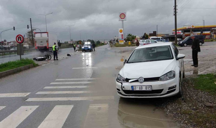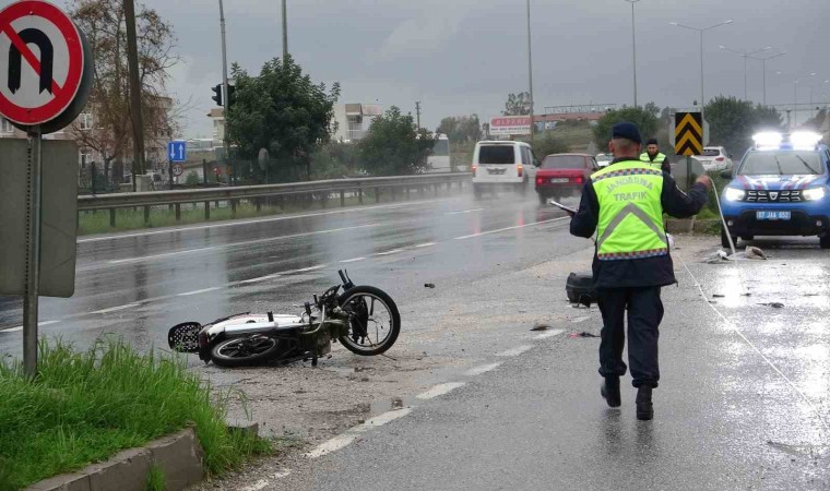 Kaza, Manavgat-Antalya D-400 Karayolu Yeni Mahalle Hatipler Kavşağı’nda meydana geldi. Antalya istikametine seyir halindeki Gökhan Kandemir’in kullandığı 07 LNR 45 plakalı motosiklet, Gültepe yönünden gelip Manavgat istikametine seyir halindeki Tuğçe Aşkın’ın kullandığı 68 AB 815 plakalı otomobil ile çarpıştı. Kazayı görenler durumu 112 Acil Çağrı Merkezine bildirdi. İhbarla adrese jandarma ve sağlık ekibi sevk edildi. İlk müdahalesi olay yerinde yapılan Kandemir, ambulansla hastaneye kaldırıldı. Güvenlik kamerasına saniye saniyesine yansıyan kazada, motosikletten yola fırlayan motosiklet sürücüsü ağır yaralandı.