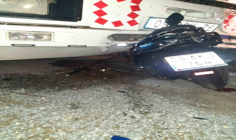 Aydın’ın Kuşadası ilçesinde virajı alamayan motosiklet sürücüsü, karşı yönden gelen kamyonla çarpıştı. Kazada motosiklet, kamyona ok gibi saplanırken ağır yaralanan sürücü ambulansla hastaneye kaldırıldı.