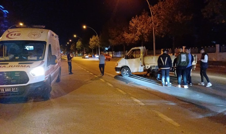 Kaza, İnönü Caddesi’nde meydana geldi. Edinilen bilgilere göre, Hasana E. yönetimindeki 19 UE 052 plakalı kamyonet ile Hasan Aslan A. yönetimindeki 61 ADC 077 plakalı motosiklet çarpıştı. Çarpışmanın etkisiyle savrulan motosikletle birlikte yere düşen Hasan Aslan A. yaralandı. Yaralı sürücü olay yerine çağrılan ambulansla Erol Olçok Eğitim ve Araştırma Hastanesi’ne kaldırılarak tedavi altına alındı.