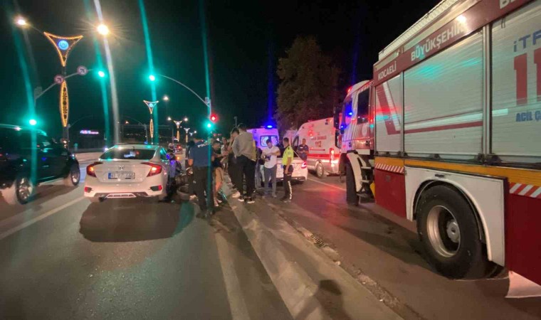 Kocaeli’nin İzmit ilçesinde motosiklet kırmızı ışıkta bekleyen otomobile arkadan çarptı. Çarpmanın şiddetiyle yola savrulan motosiklet sürücüsü ve yolcu yaralandı.