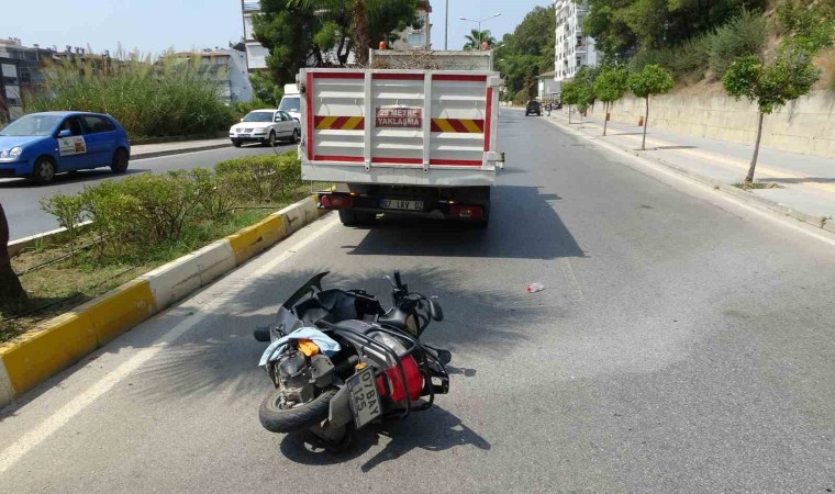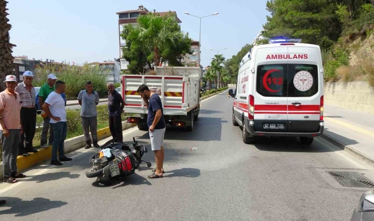 Antalya’nın Manavgat ilçesinde, park halindeki kamyona arkadan çarpan motosiklet sürücüsü yaralandı.