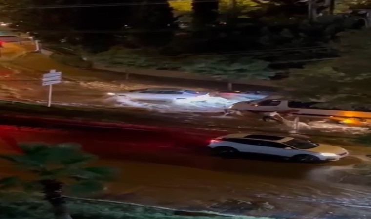 Kahramanmaraş’ta sel sularına kapılan motosiklet, yaklaşık 100 metre sürüklendi. Motosikleti yoldan geçen kepçe durdurdu.