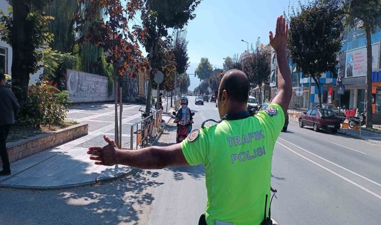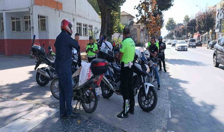 Trafiği tehlikeye düşürecek şekilde motosiklet kullanan ve yoğun şikayetlere konu olan motosiklet sürücülerine karşı Emniyet Müdürlüğü Trafik Tescil ve Denetleme Şube Müdürlüğüne bağlı ekipler denetimler yapıyor. Bu çerçevede, şehir merkezinde bulunan Kuyumcuzade Bulvarı üzerinde uygulama yapan ekipler, yarım saat içinde 45 motosiklet sürücüsünü denetledi. Motosiklet sürücülerinde kask kullanımı, plaka, ehliyet sorgusu yapan ekipler 45 motosiklet sürücüsünden 19’una ceza ceza işlem uyguladı.