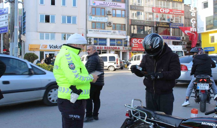 Samsun’un Çarşamba ilçesinde trafik ekipleri, motosiklet sürücülerine yönelik uygulama gerçekleştirdi.