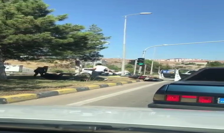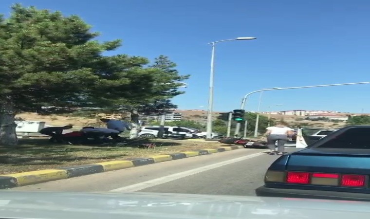 Olay Bulak Kavşağında meydana geldi. Kırmızı ışıkta bekleyen iki motosiklet sürücüsü henüz bilinmeyen bir nedenle birbirine girdi. Yumrukların havada uçuştuğu kavga anı bir vatandaş tarafından cep telefonu kamerasıyla kaydedildi.