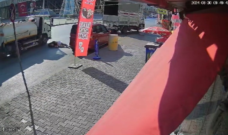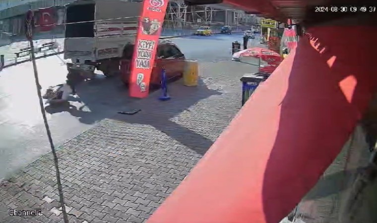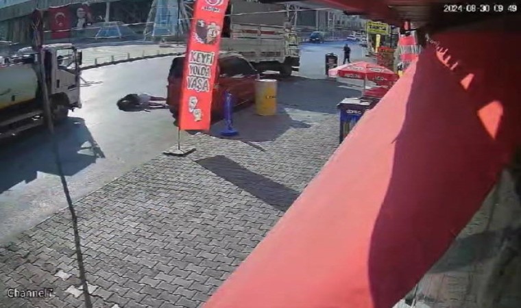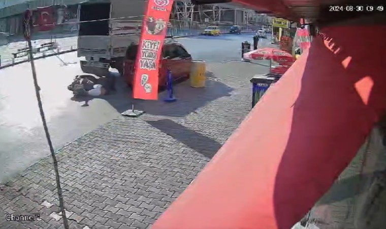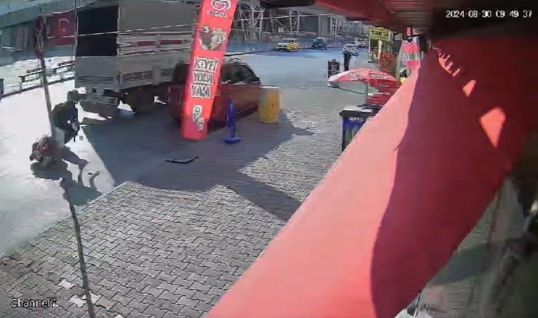 Kaza, sabah saat 08.50’de Antalya’nın Muratpaşa ilçesi Cebesoy Caddesi Doğu Garajı AVM önünde yaşandı. Bir esnafın güvenlik kamerasına anbean yansıyan görüntülere göre, Cebesoy caddesi istikametinden 1261 sokağa doğru sağa dönmek üzere olan E.Ç. isimli şahsın kullandığı 19 SP 948 plakalı kamyonete, aynı istikamette seyir halindeki Aslan Kaan Ç.’nin (19) kullandığı 07 AZS 172 plakalı motosiklet arkadan çarptı. Motosiklet sürücüsü çarpmanın etkisiyle kamyonetin arkasına kafasını vurarak yere düşerken, kafasındaki kask sürücüyü korudu, motosiklet ise seyir halindeki kamyonetin altında kaldı. Sabah saatlerinde yoğun trafiğin olduğu bölgede; motosikletlinin arkasındaki Muratpaşa Belediyesine ait kamyonet şoförünün dikkati sayesinde, yere düşen motosiklet sürücüsü aracın altında kalmaktan kurtuldu. Belediye kamyonu manevra yaparak yaralı sürücünün yanına inerken, sürücünün arkadan çarptığı kamyon şoförü ise aracını durdurarak, yaralı sürücünün başında bekledi.
