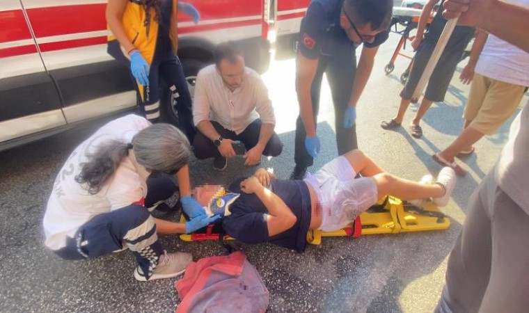 Antalya’da hızını kontrol edemeyen motosikletli sürücünün aracı kamyonet altında kalırken, sürücü kamyona çarparak yola savruldu. Yerdeki motosiklet sürücüsü arkadan gelen kamyonet şoförünün dikkati ile ölümden kıl payı kurtuldu.