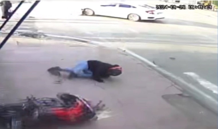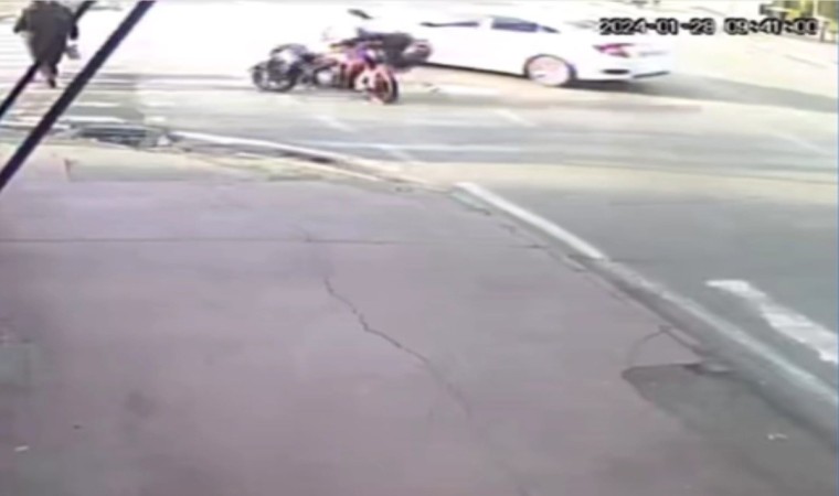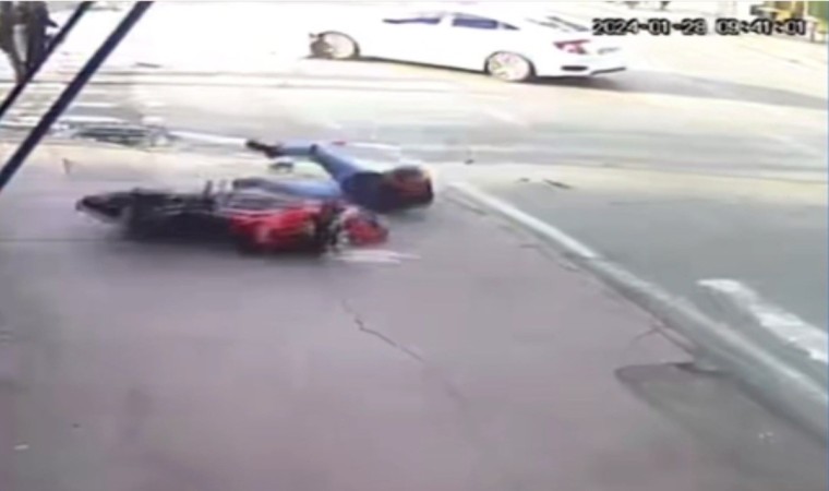 Kaza, Samsun’un İlkadım ilçesi İstasyon Mahallesi Lise Caddesi’nde meydana geldi. Edinilen bilgiye göre, Özkan Yıldırım’ın kullandığı 80 LS 888 plakalı otomobil, Yusuf İlker Özdemir (19) idaresindeki 55 ALN 717 plakalı motosiklete çarptı. Çarpışmanın şiddetiyle savrulan motosiklet sürücüsü yerde metrelerce sürüklenerek yaralandı. Ambulansla hastaneye kaldırılan motosiklet sürücüsü Yusuf İlker Özdemir’in çeşitli yerinden yaralandığı ve sol ayağının kırıldığı ortaya çıktı. Kaza anı ise güvenlik kamerası tarafından anbean görüntülendi. Kazayla ilgili soruşturma başlatıldı.