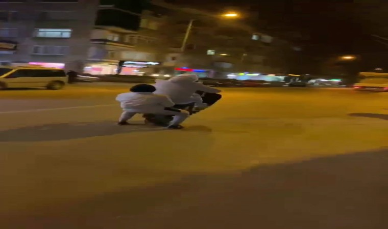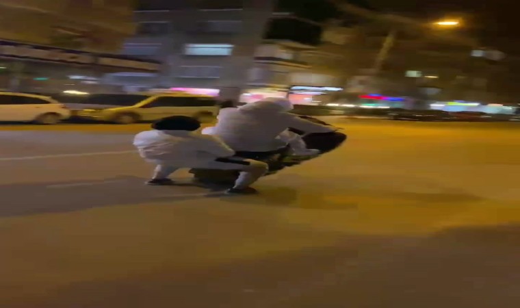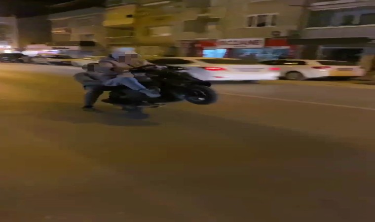 Olay, Hamidiye Mahallesi Park Caddesi üzerinde meydana geldi. Plakası belirlenemeyen motosiklet sürücüsü, ön lastiğini kaldırıp ilerlemeye başladı. Tehlikeli anlar amatör kameraya yansıdı.