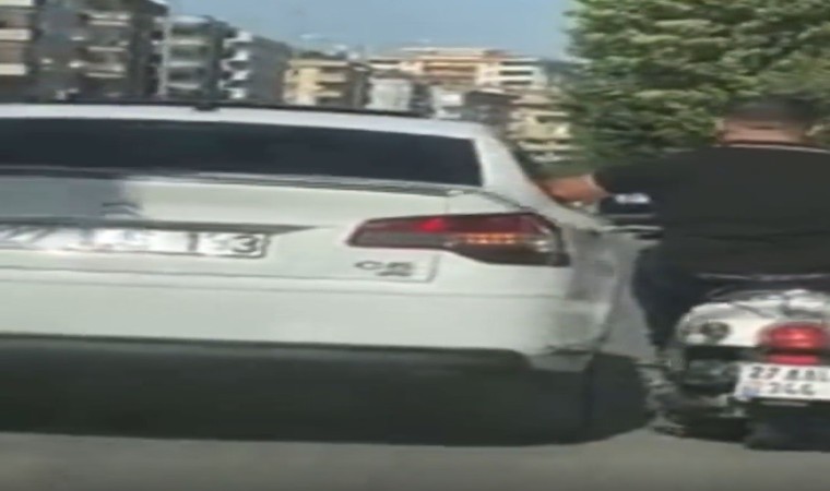 Gaziantep’in Şehitkâmil ilçesinde bir motosiklet sürücüsünün, trafikte seyir halindeki bir başka aracın camına tutunarak ilerlediği anlar yürekleri ağza getirdi. Motosikletli sürücünün, seyir halindeki başka bir aracın camına tutunarak ilerlediği anlar ise başka sürücü tarafından cep telefonu kamerası ile görüntülendi.