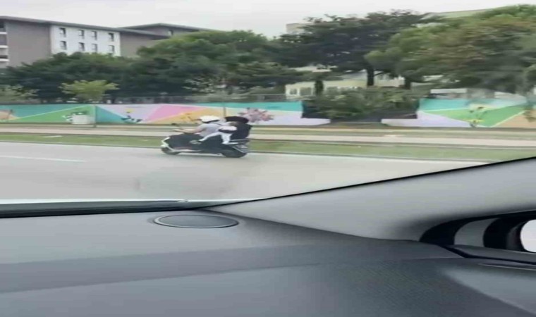 Olay, merkez Osmangazi ilçesi İzmir Yolu üzerinde meydan geldi. Bursa’da bir sürücü eşi ve bebeğiyle birlikte motosiklet üzerinde yolculuk yaparken kameralar tarafından görüntülendi. Hem kendisini hem de eşi ve bebeğini riske atan sürücünün yürekleri ağza getiren görüntüleri telefon kamerası tarafından anbean görüntülendi.