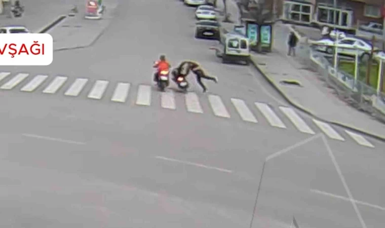 Kırıkkale’de motosikletin yayaya, ticari taksinin ise elektrikli skutere çarptığı kazalar güvenlik kameralarına yansıdı. Her iki kazada 3 kişi yaralandı.