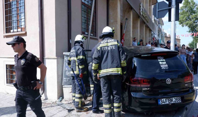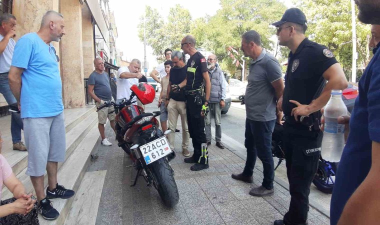 Kaza, Hükümet Caddesi Talatpaşa Asfaltı üzerinde meydana geldi. Alınan bilgiye göre, Atatürk Bulvarı’nda N.R.A. yönetimindeki 34 FBK 268 plakalı otomobil, A.T. idaresindeki 22 ACD 612 plakalı motosiklete çarpmamak için manevra yaptığı esnada sürücünün direksiyon hakimiyetini kaybetmesi ile bir bankanın duvarına çarptı. Kazayı görenlerin ihbarı üzerine bölgeye polis, itfaiye ve 112 acil sağlık görevlileri sevk edildi. Çevredeki vatandaşların yardımıyla araçtan çıkarılan otomobil sürücüsü N.R.A. ve otomobilin çarpmaması için kendisini yere atan motosiklet sürücüsü A.T., gölgelik alanda ambulansın gelmesini bekledi. Kazadan hafif sıyrıklarla kurtulan N.R.A., olay yerinde yapılan müdahalenin ardından kazanın şokunu atlatmaya çalıştı. Ayağında ağrı olduğunu söyleyen motosiklet sürücüsü A.T. ise kontrol amacıyla ambulansla hastaneye kaldırıldı.