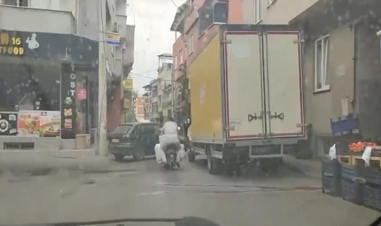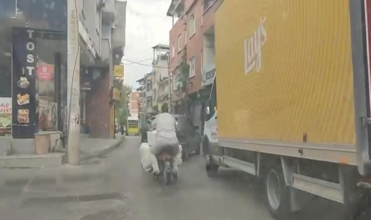 Merkez Osmangazi ilçesinde motosikletiyle trafiğe çıkan bir sürücü, motosiklete yüklediği eşyalarla kilometrelerce seyir etti. Kendi canını da hiçe sayan sürücü, uyarılara aldırış etmeden ilerlerken, ilginç yolcuğu gören trafikteki diğer sürücüler ise o anları şaşkınlıkla izledi. Motosikletli sürücü bir süre sonra gözden kaybolurken, tehlikeli yolculuk kameraya anbean yansıdı.