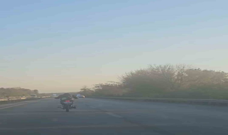 Görüntüler Mustafakemalpaşa ilçesi Bursa yolunda kaydedildi. Mustafakemalpaşa’dan Bursa istikametine seyir halinde olan sürücü, motosikletin üzerine yüzüstü yattı. Motosikleti bir süre bu şekilde kullanan ve zaman zaman hızını 100 kilometreye kadar çıkaran sürücüyü görenler o anları cep telefonuyla kaydetti. Görüntüler üzerine polis ekipleri harekete geçti.
