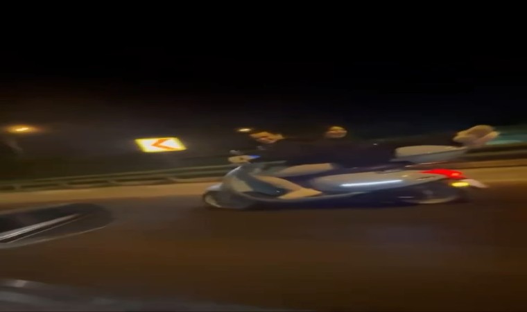 Bursa’da bir motosiklet sürücüsünün arkasına aldığı artcı, motosikletin arkasında uzanarak seyahat etti. Tehlikeli anlar kameraya yansıdı.