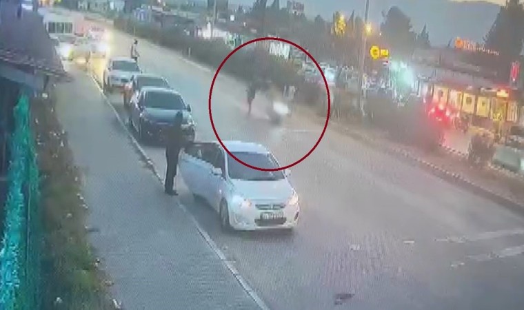 Hatay’ın Antakya ilçesinde yolun karşısına geçen 3 yayaya çarpan motosikletin, 2 yayayı çarpmanın etkisiyle havaya uçurduğu anlar güvenlik kamerasına yansıdı.