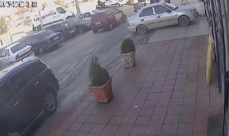 Motosikletin park halindeki araca çarptığı kaza kamerada