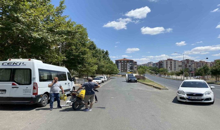 Tekirdağ Çorlu’da motosikletli kargo görevlisi, yolun sağına sapan otomobili sağdan geçmek isterken kaza yaptı.