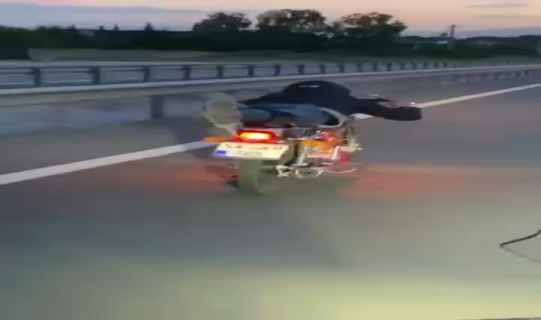 Görüntüler, İnegöl ilçesi Bursa-Ankara yolunda kaydedildi. İnegöl’den Bursa istikametine seyir halinde olan kasklı sürücü, motosikletin üzerine yüzüstü yattı. Motosikleti bir süre bu şekilde kullanan ve zaman zaman hızını 125 kilometreye kadar çıkaran şahsı görenler o anları görüntüledi.