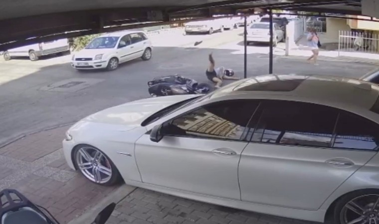 Antalya’nın Manavgat ilçesinde motosiklet ile otomobilin çarpışması sonucu meydana gelen kazada motosikletine birlikte sürüklenen motosiklet sürücüsü, bir süre sonra motosikletine binerek olay yerini terk etti. Kaza anı güvenlik kamerasına saniye saniyesine yansırken, olay yerinden kaçan motosiklet sürücüsünün çarpmanın şiddetiyle havada uçarak asfaltta sürüklendiği görüldü.