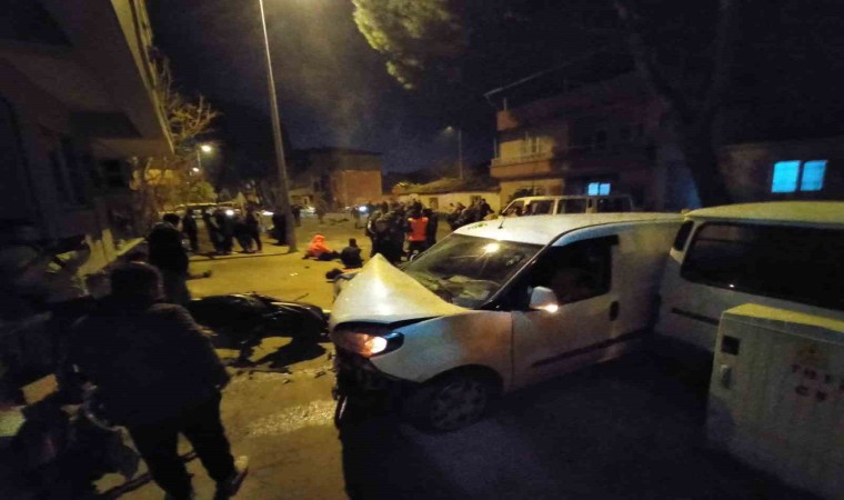 Aydın’ın Buharkent ilçesinde motosiklet ile çarpışan ticari araç, savrularak park halindeki minibüs ve motosiklete çarptı. Kazada 9 kişi yaralandı.