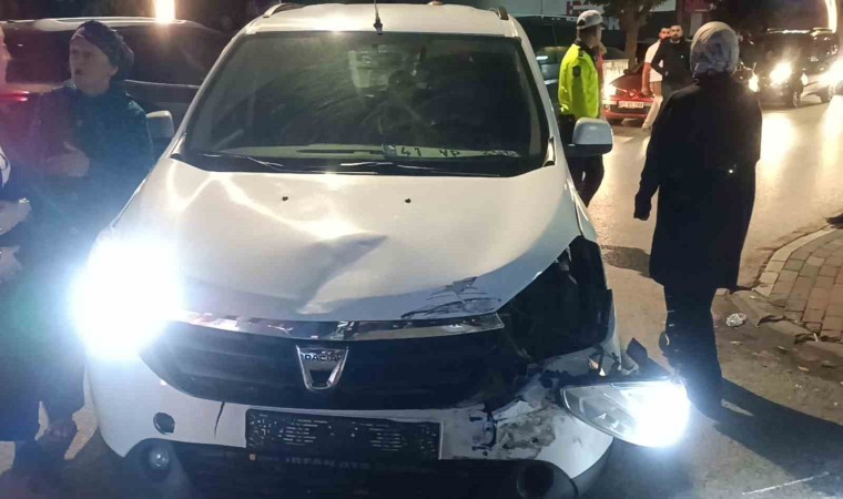 Kaza sebebiyle hafif ticari araç hasar alırken, polis olayla ilgili inceleme başlattı.