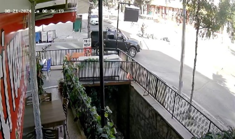 Kaza anı çevrede bulunan güvenlik kamerasına anbean yansıdı. Görüntülerde Motosiklet sürücüsünün ana caddeye çıktığı anda cadde üzerinde seyir halinde olan hafif ticari araçla çarpıştığı anlar yer aldı. Çarpışmanın şiddeti ile motosiklet sürücüsünün savrularak yere düştüğü, çevrede bulunan vatandaşların yaralı sürücüye yardıma koştuğu anlar kameralarca kaydedildi.