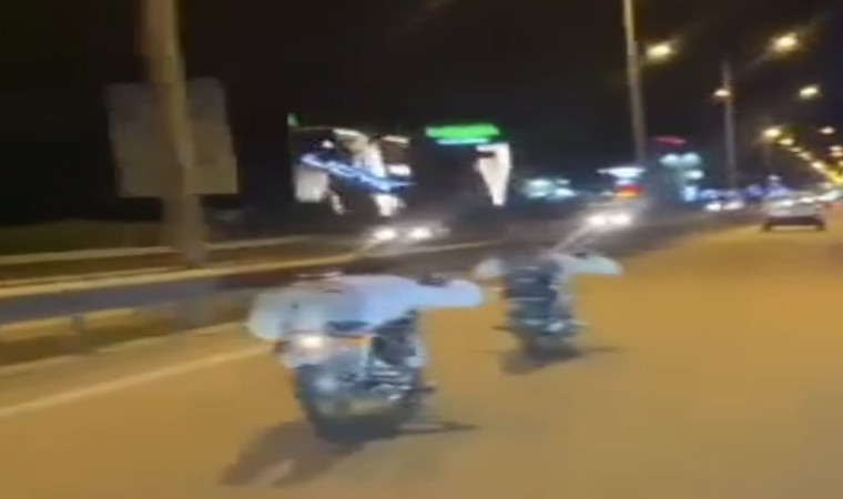 Olay, Bursa-Ankara karayolu üzeri İnegöl girişinde meydana geldi. Sürücüleri tespit edilemeyen 2 genç, karayolu üzerinde motosikletlerinin üzerine yatarak yarış yapmaya başladı. Sol şeritte birbirine yakın şekilde yarışan gençler, araçları da tehlikeli ve hatalı şekilde solladı. Gençlerin 150 kilometre hıza ulaştıkları ise diğer bir motosiklet sürücüsü tarafından görüntülendi.