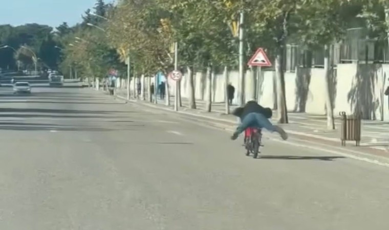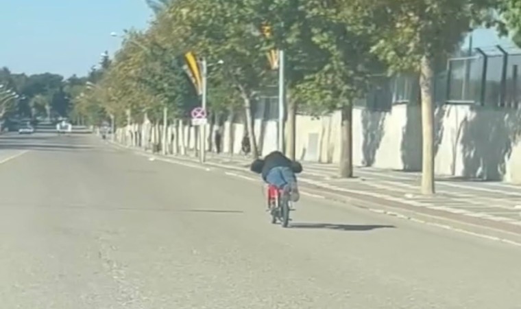 Şanlıurfa’nın Siverek ilçesinde bir kişi yüzüstü yatarak motosiklet sürdü. O anlar amatör kameraya yansıdı.