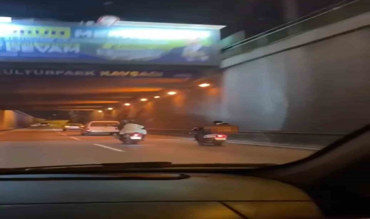 Her gün bir biri ardına gelen trafik kazaları, kimsenin kulağına küpe olmuyor. Bursa’da yine kazaya davetiye çıkaran motosiklet sürücüsü, ’pes’ dedirtti. Merkez Osmangazi ilçesi Mudanya Bulvarı’nda üzerinde seyreden kurye, seyir halindeyken ayak ayak üstüne atarak çevresindekilere artistlik yapmaya çalıştı. Bir süre bu şekilde giden motosiklet sürücüsü, hem kendinin canını hem de trafiği tehlikeye attığından habersiz gözden kayboldu. Yaşanan bu anlar ise, bir vatandaşın cep telefonu kamerasına yansıdı.