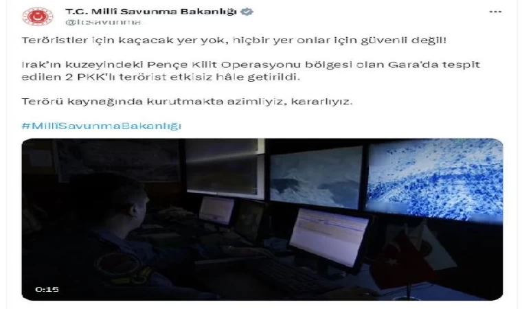 ANKARA, (DHA)- MİLLİ Savunma Bakanlığı, Irak’ın kuzeyindeki Pençe Kilit Operasyonu bölgesi Gara’da, 2 PKK’lı teröristin etkisiz hale getirildiğini duyurdu.